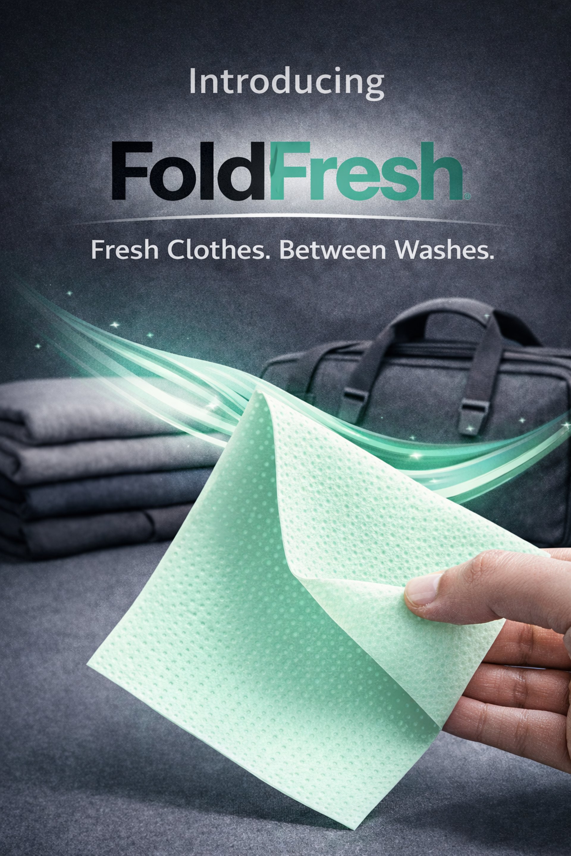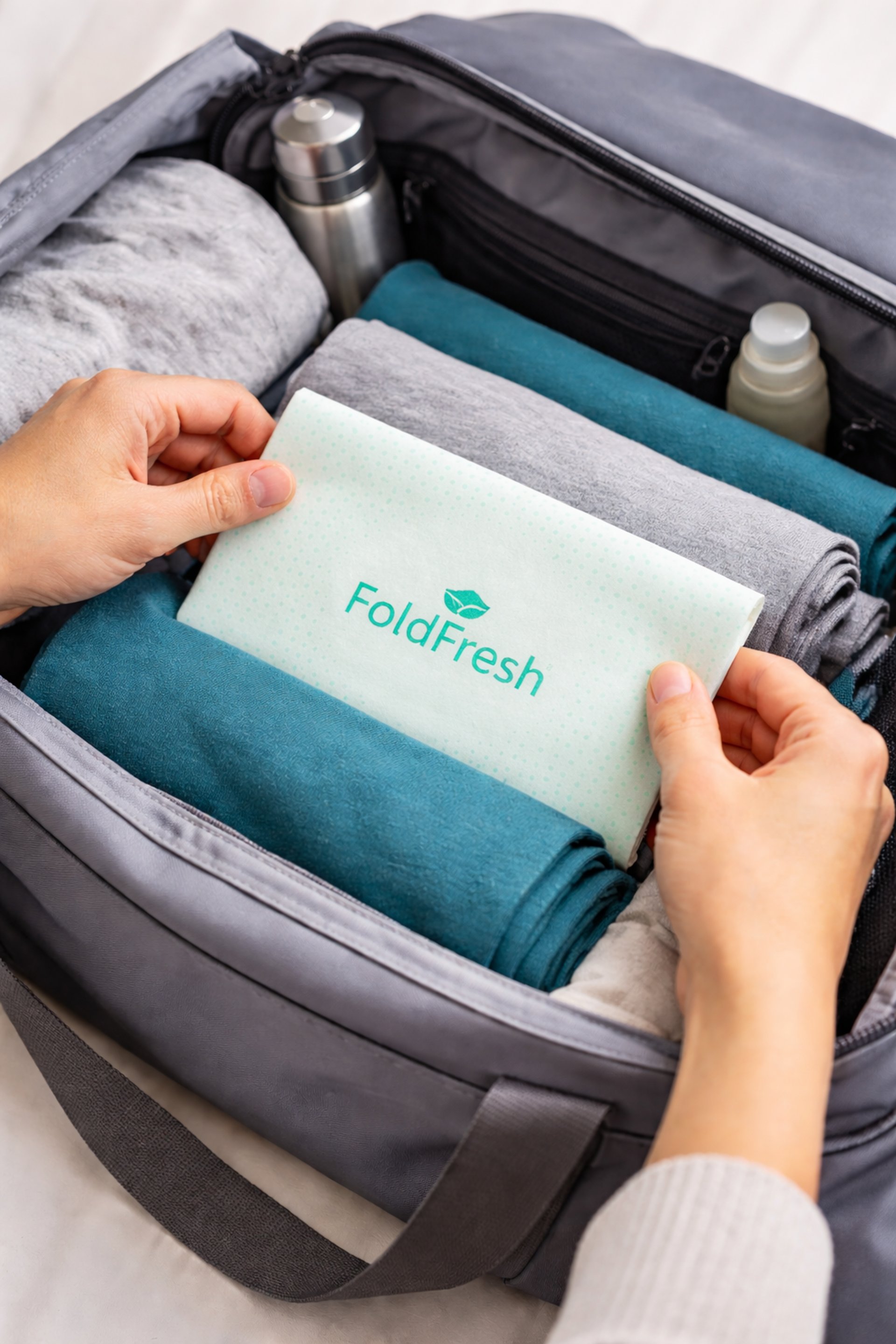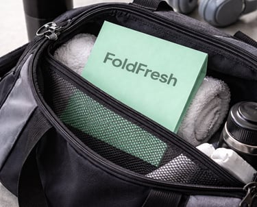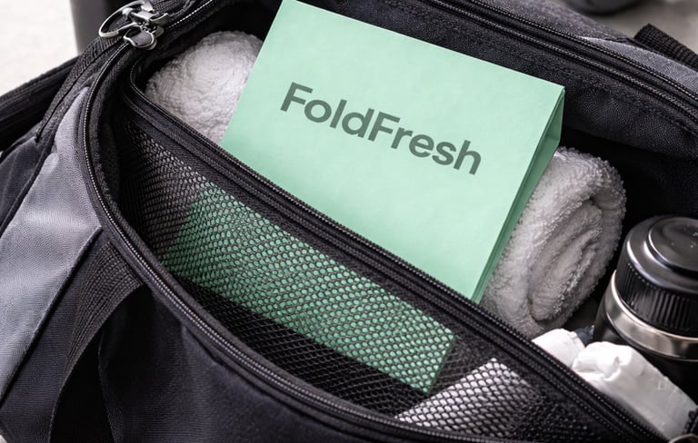 FoldFresh™ is a freshness sheet designed to stop gym-bag odor before it starts — perfect for active lifestyles, travel, and everyday storage.